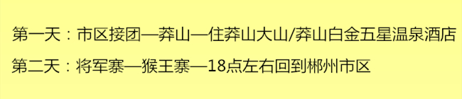 【莽山國家森林公園】以蟒蛇出沒,林海莽莽而得名,養(yǎng)山國家森林公園總面積2萬公頃。森林善率92.8%至今保存有6000公頃的原始森林,是湖南省面積森林公園,養(yǎng)山境內(nèi)山體垂直高差大,山勢險峻雄渾山岳地貌景觀具有高、險、雄、奇的特點。莽山聳立著干米以上的高峰,126座,主峰猛坑石(湘粵兩省共有)海拔1902米,有"天南峰"之稱。游畢,前往酒店入住。第二天:將軍寨景區(qū)一猴王寨景區(qū)-郴州送團(tuán)自理早餐后前往景區(qū),換乘景區(qū)車進(jìn)入【將軍石風(fēng)景區(qū)(徒步原始次森林,留影將軍古)鬼子寨是湖南省第一個自然景觀區(qū);獨特的自然景觀,山高石怪,林幽峰奇水色天光造就了莽山眾多壯麗秀美的景觀。如莽山頗有名氣的鬼子寨和崖子石和猴王寨景區(qū),其懸崖峭壁就像刀劍削劈一般。莽山的地形由東南向西北傾斜,相當(dāng)崎嶇相對高差大,一般為500-800米,最大高差達(dá)1400米。大凡游莽山者,無不在鬼子寨前如癡如醉。這里正處于原始林莽深處,300余米的幽深峽谷中,干尺飛瀑狂瀉四周懸崖峭壁遮天蔽日,奇松怪石令人驚嘆叫絕。繼而游覽【莽山動值物博物館,猴王寨瀑布群風(fēng)景區(qū)】猴王寨背靠原始林莽,危崖峭壁,古木蔽天,谷狹徑幽山挾水轉(zhuǎn),山水相間,飛瀑成群,一瀑一潭錯落有致;負(fù)離子高達(dá) 100300 個/cm3,時有野猴來此覓食戲水是游人戲人水觀猴、吸負(fù)離子潤肺的最佳境地。18:00前往郴州市區(qū)送團(tuán),結(jié)束愉快的郴州之旅!